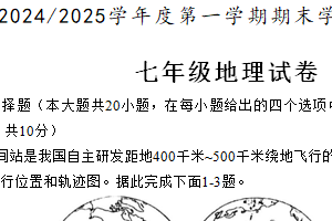 2024~2025学年度上学期七年级地理期末测试试卷 (满分100分 考试时限:60分钟) 一、选择题:下列各小题的四个选项中,只有一个选项正确。请选择出正确的选项并填涂到答题卡上…